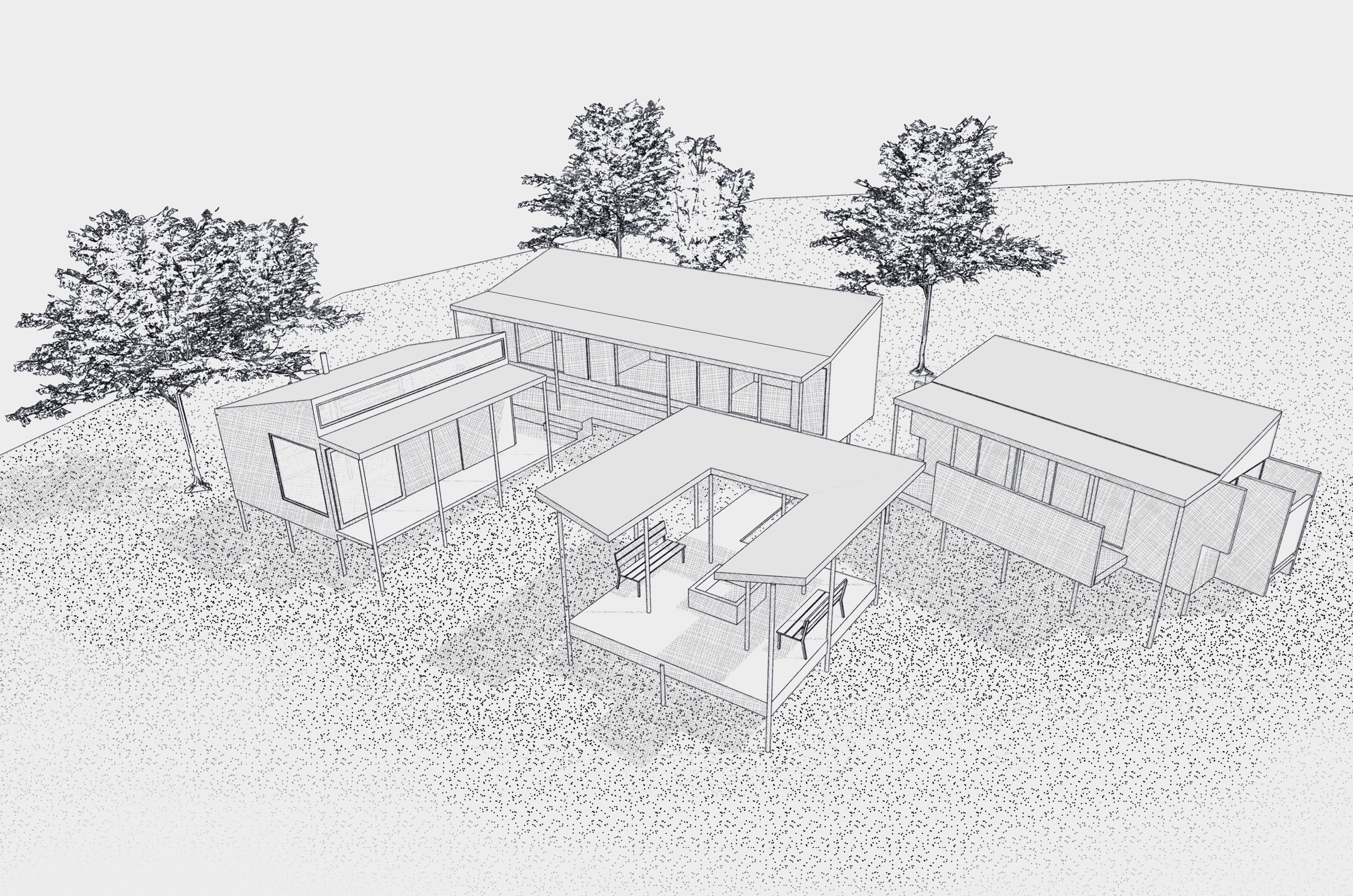 The new hiking huts, strategically located adjacent to the existing facilities, are designed to ensure minimal environmental impact, while offering adaptable and robust construction tailored to diverse site conditions. The design approach emphasizes simplicity, sustainability, and flexibility to integrate seamlessly with the reserve’s natural environment.