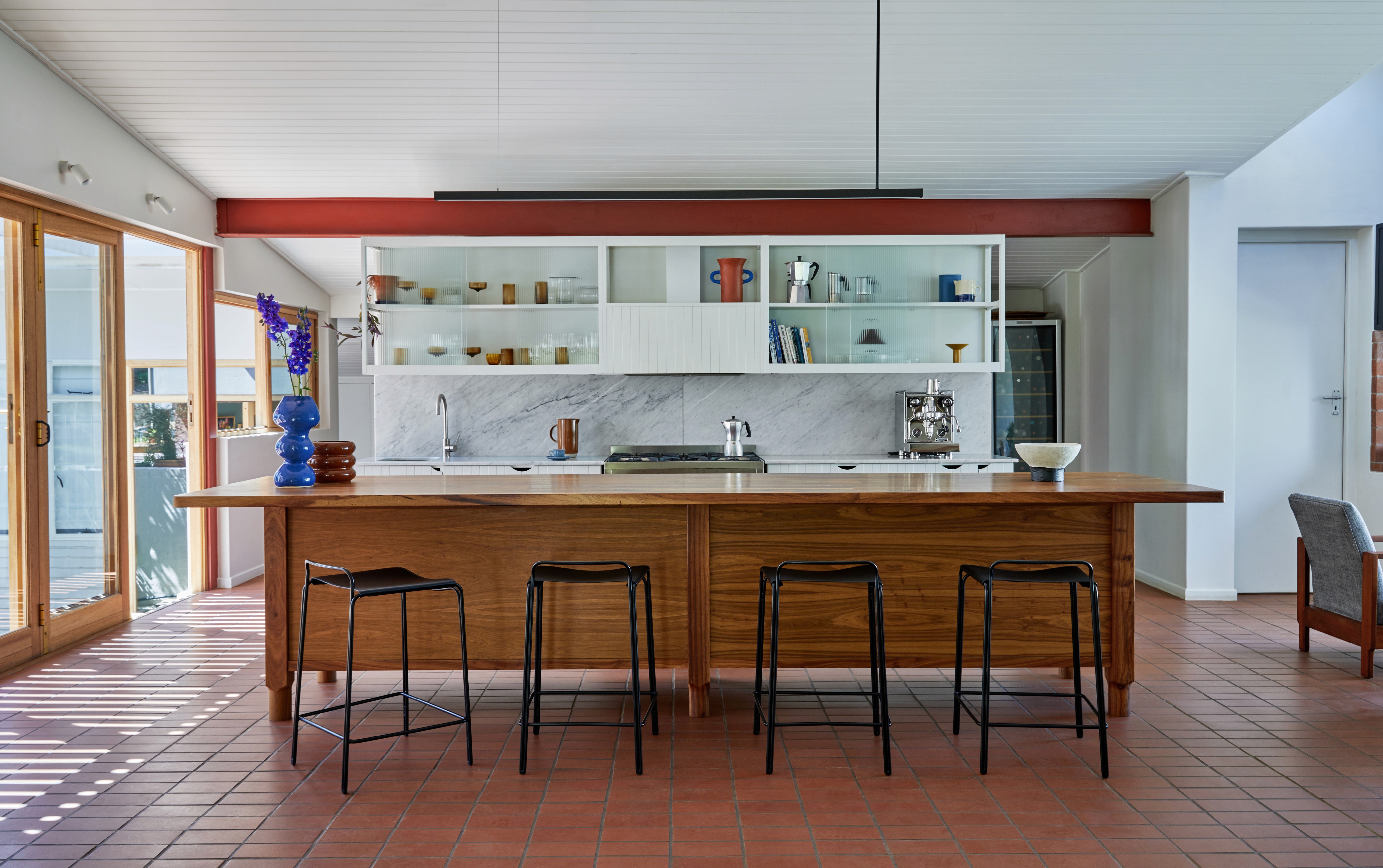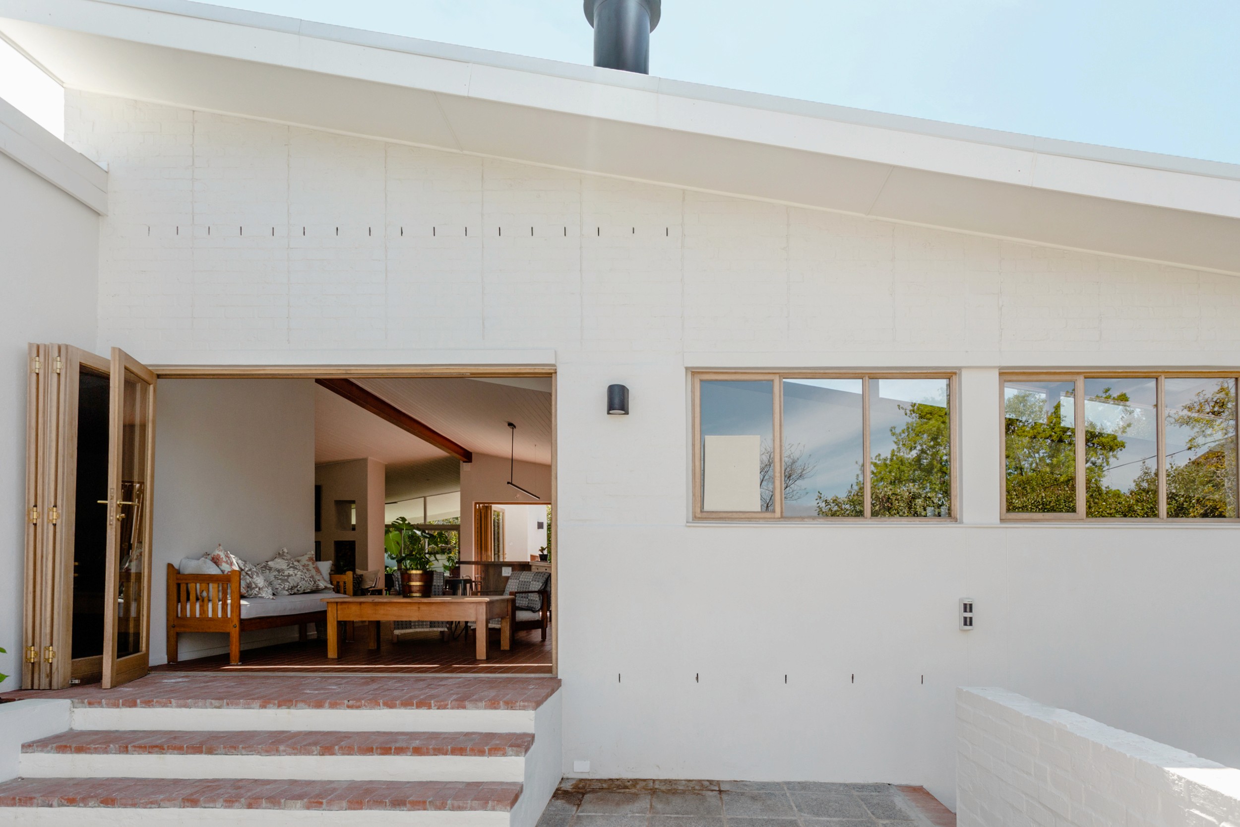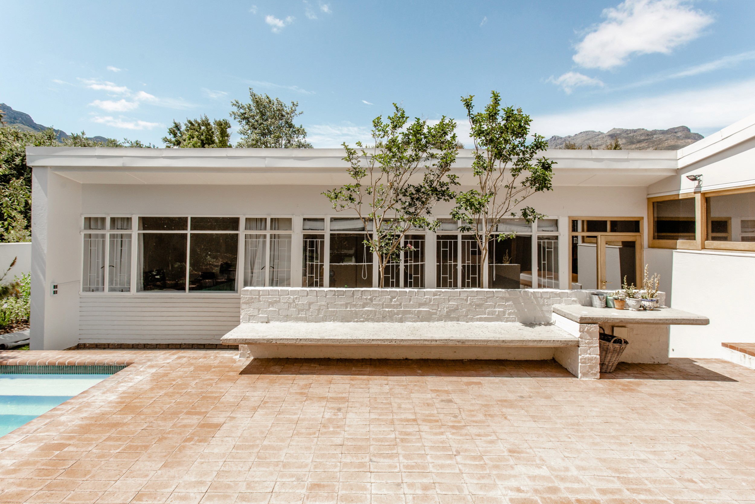 Preserving its historical essence as a humble 1973 modernist house situated in the beautiful town of Stellenbosch, South Africa, the single storey family abode was adapted through discrete design intervention to complement the convivial and culinary lifestyle of a young family.