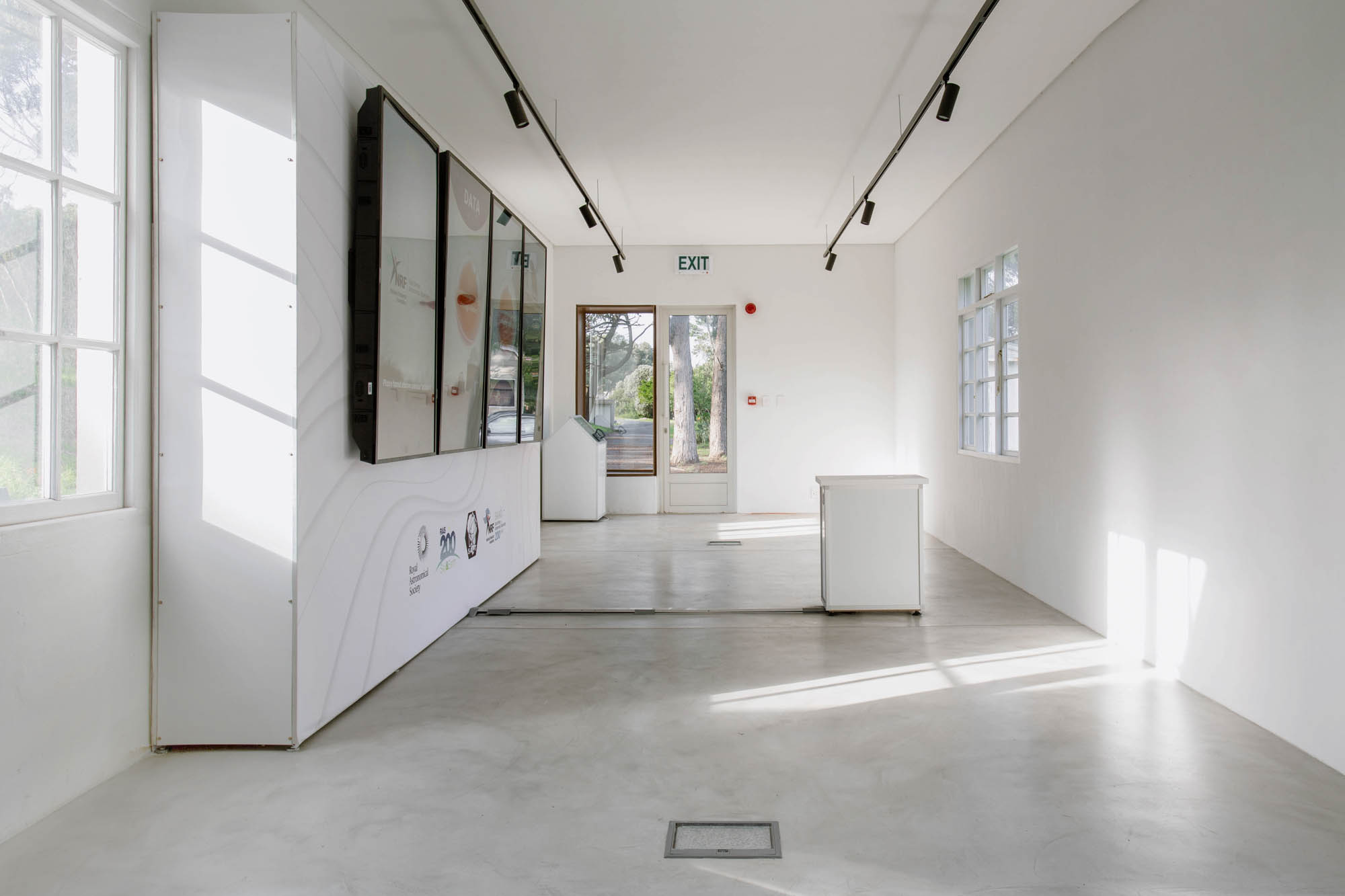 Visitors are guided through the exhibition, leading to a dark room housing a heliostat on a new concrete roof. This heliostat tracks the sun's movement and reflects its rays onto a central table. The old Education Resources Centre wing now hosts rotating exhibits.