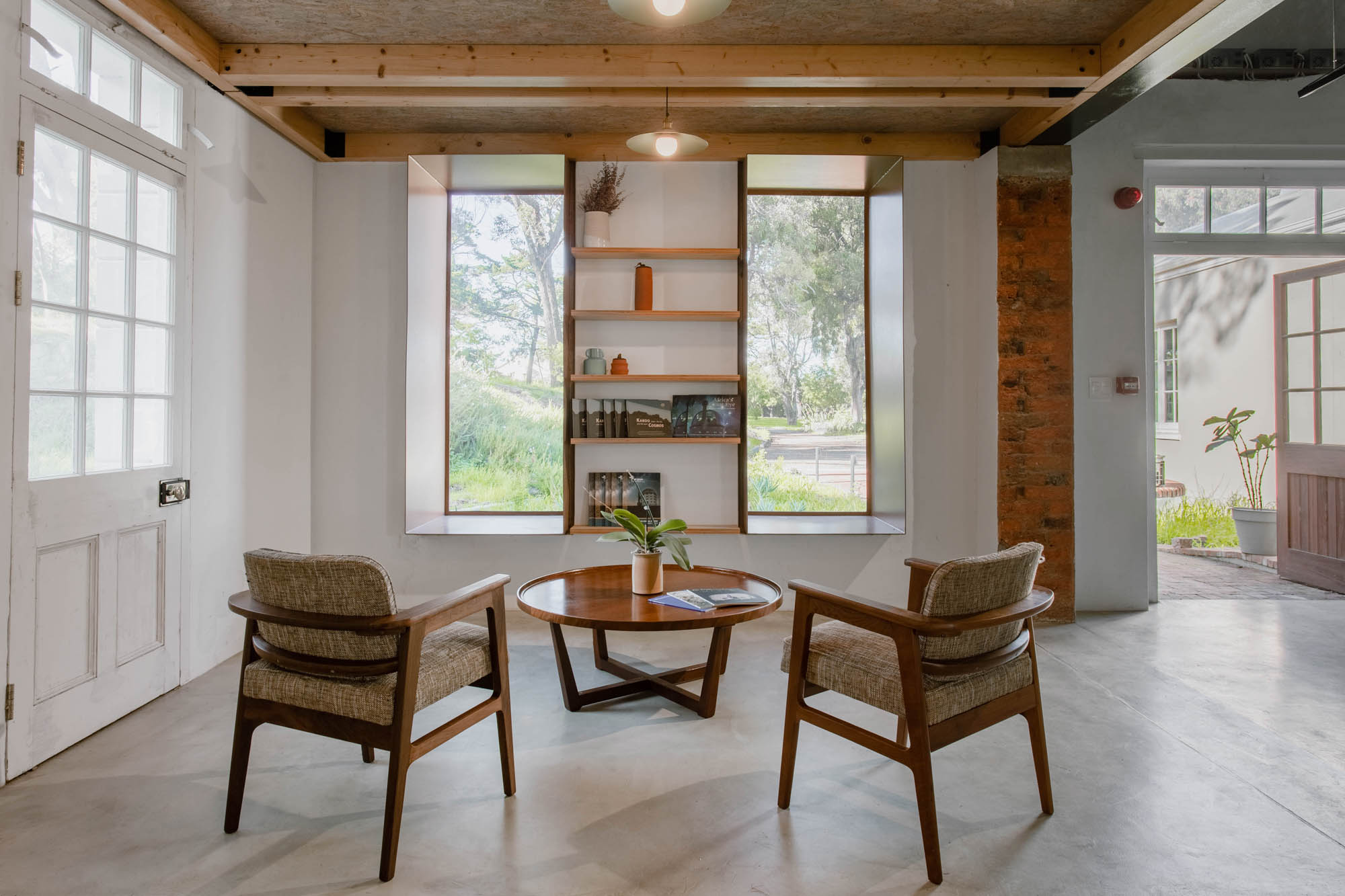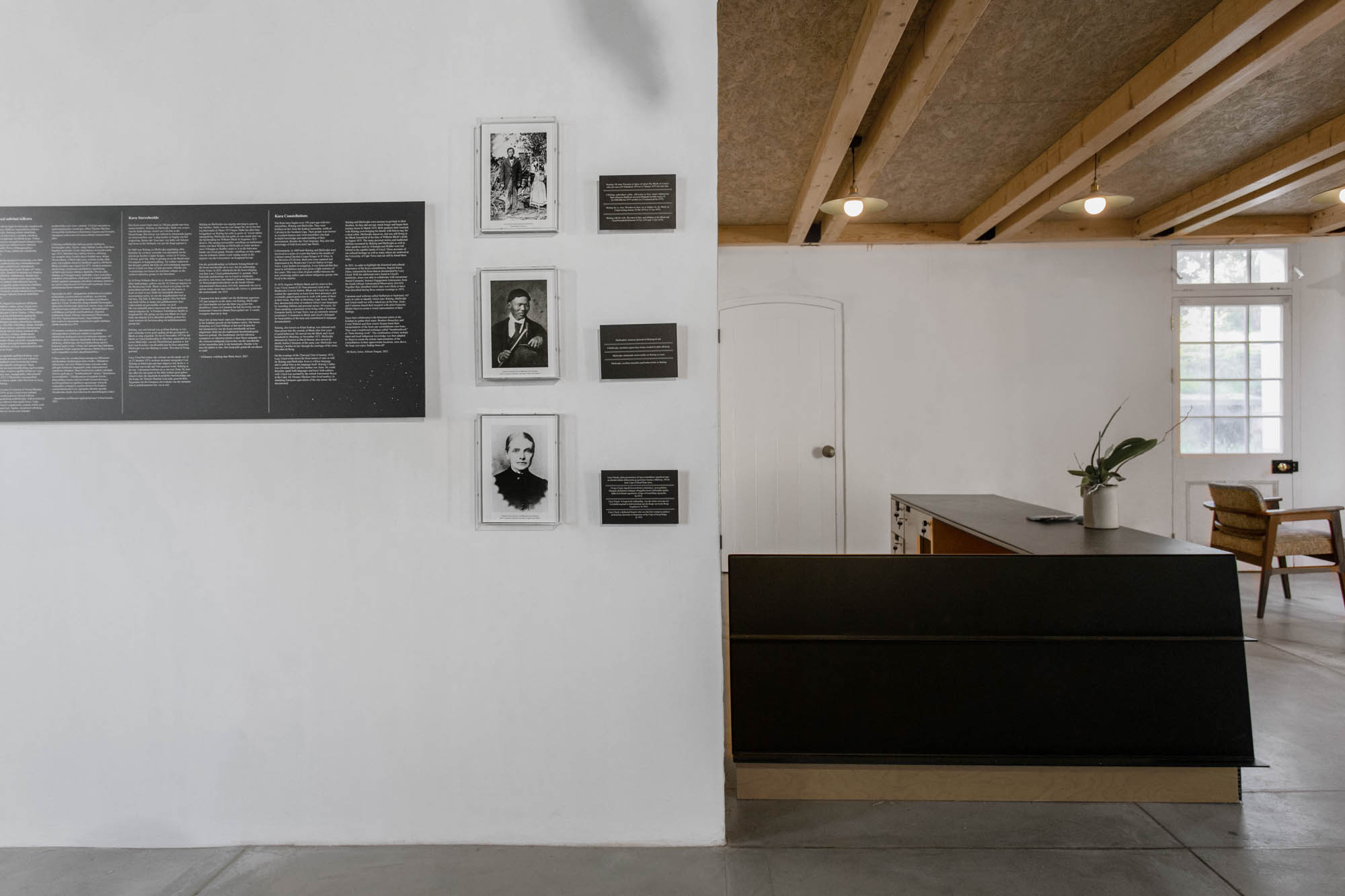 The restoration of the Victorian-era pumphouse into a Visitor's Centre provided an opportunity to uncover the site's layered meanings. The building was carefully analysed, with demolition targeted at non-original portions to emphasise the original structure. Notably, the main entrance and exhibition space underwent significant changes: internal walls were removed, timber trusses were restored, and a new perforated aluminium ceiling was added. This captivating aluminium piece faithfully recreated the night sky, adorned with indigenous Kora(!Ora) constellations inspired by the works of Bleek and Lloyd from 1874.